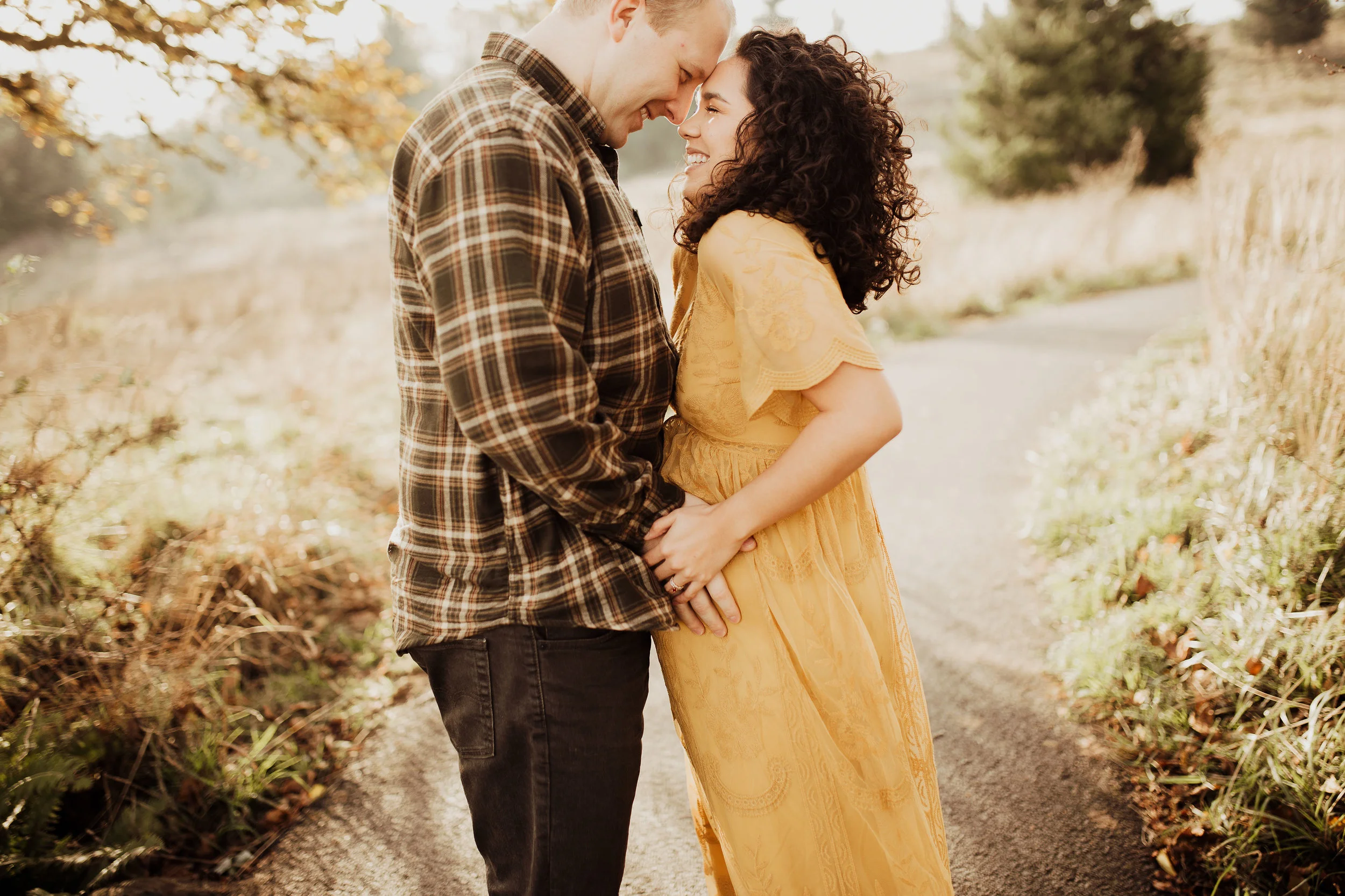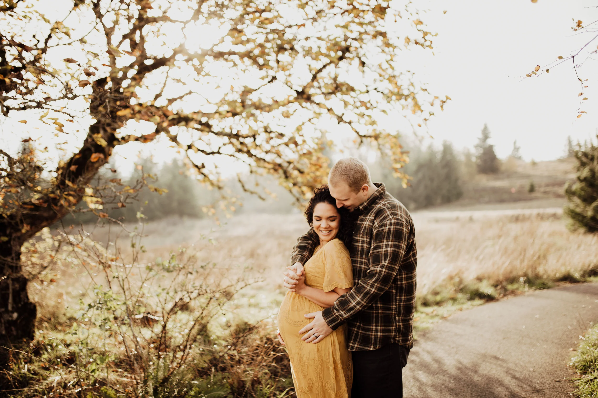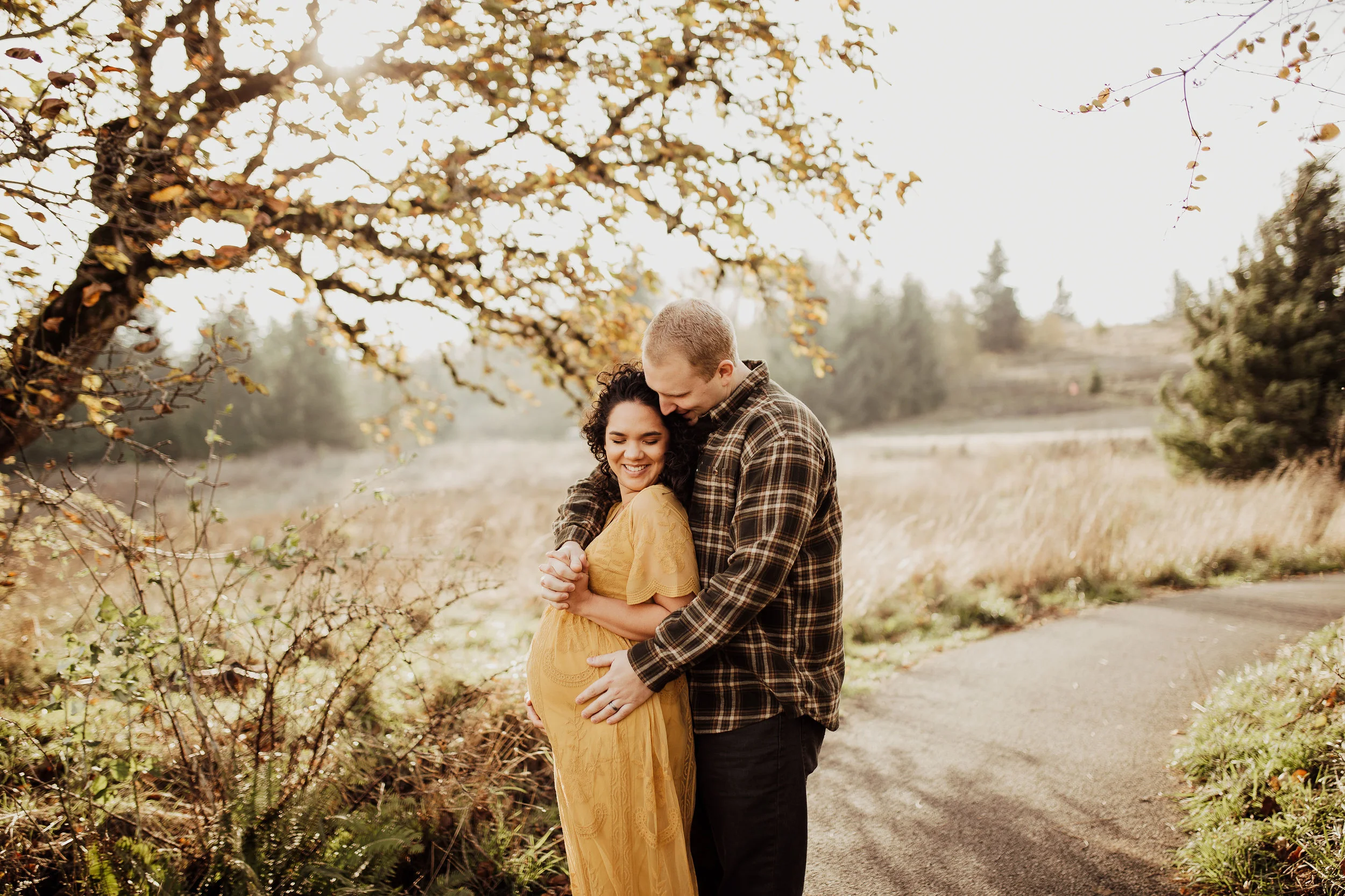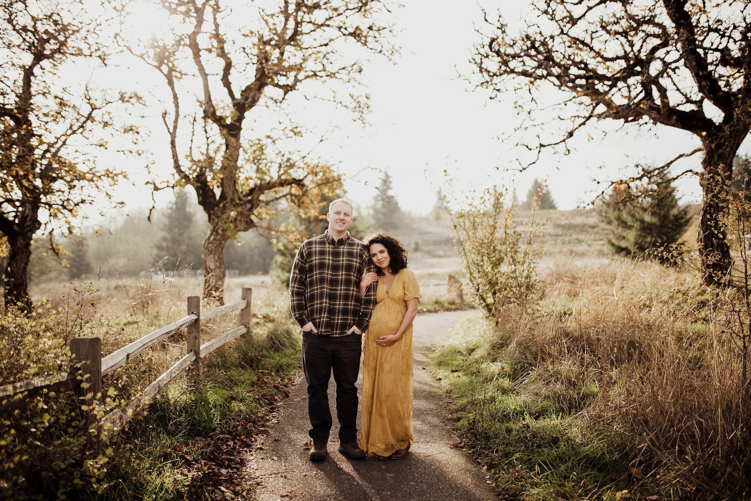We rescheduled their maternity session & prayed for sun. The day for their maternity session arrived, once again. We had planned to have it at Vista House in the Gorge. Once we all were there, we realized the wind was just too much to handle. Winds so strong that we had to yell, just to have a conversation. We all loaded up and headed to my back up location. Thankfully, the sun we had prayed for showed up… along with the Oregon cold brisk air. I think we did their entire maternity session in under 45 mins, moving as quickly as we could to try to stay warm. Looking back at these, You’d never know it was 30 degrees with wind.
