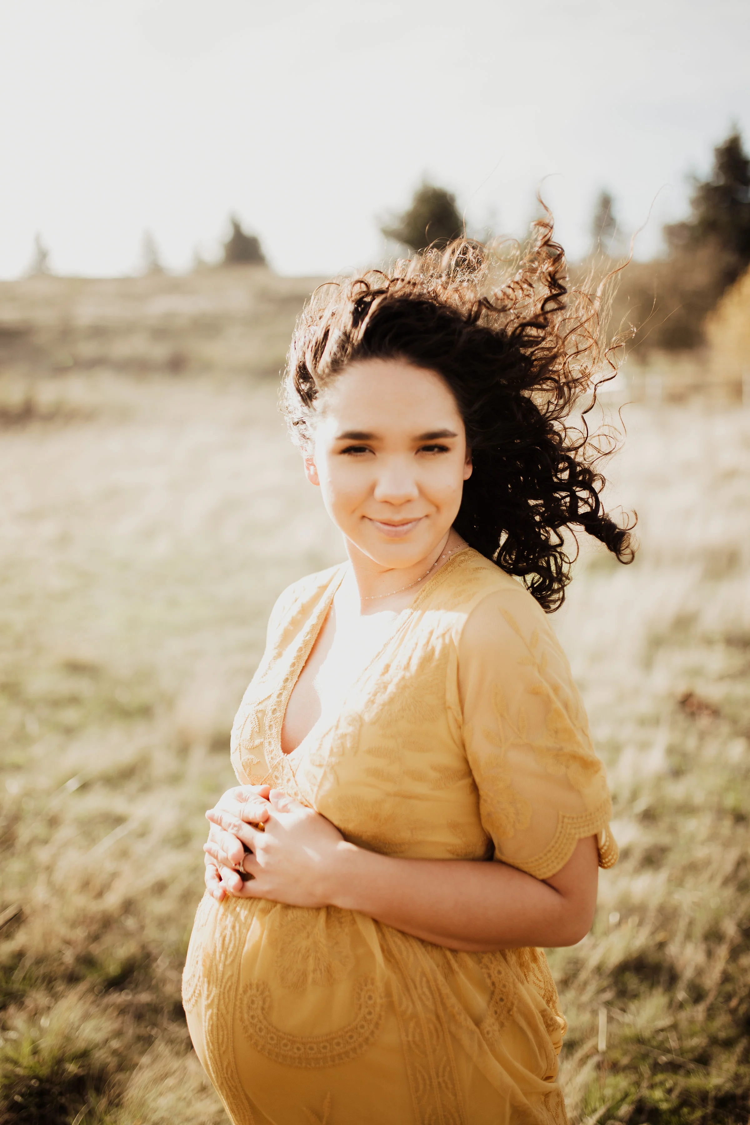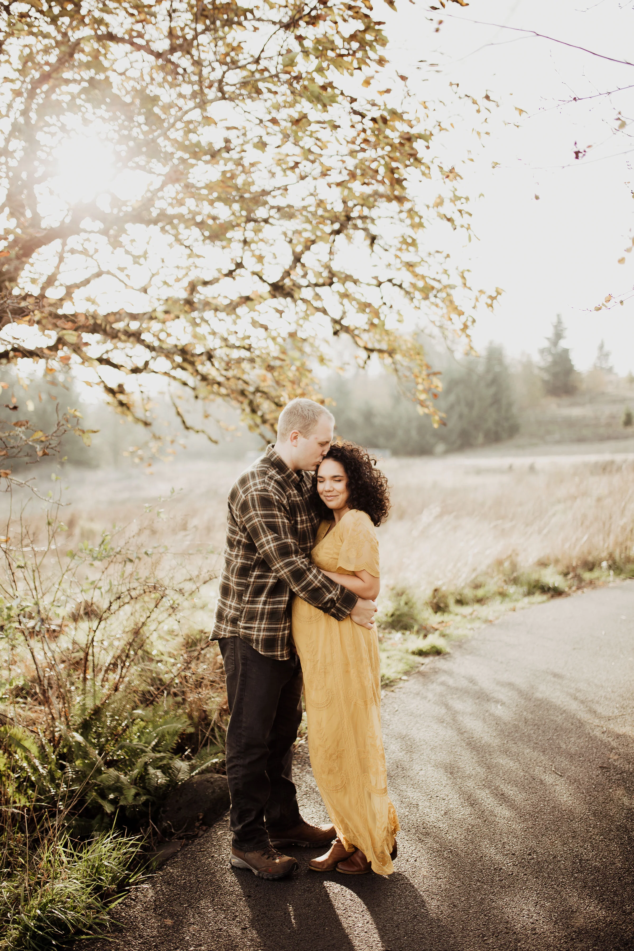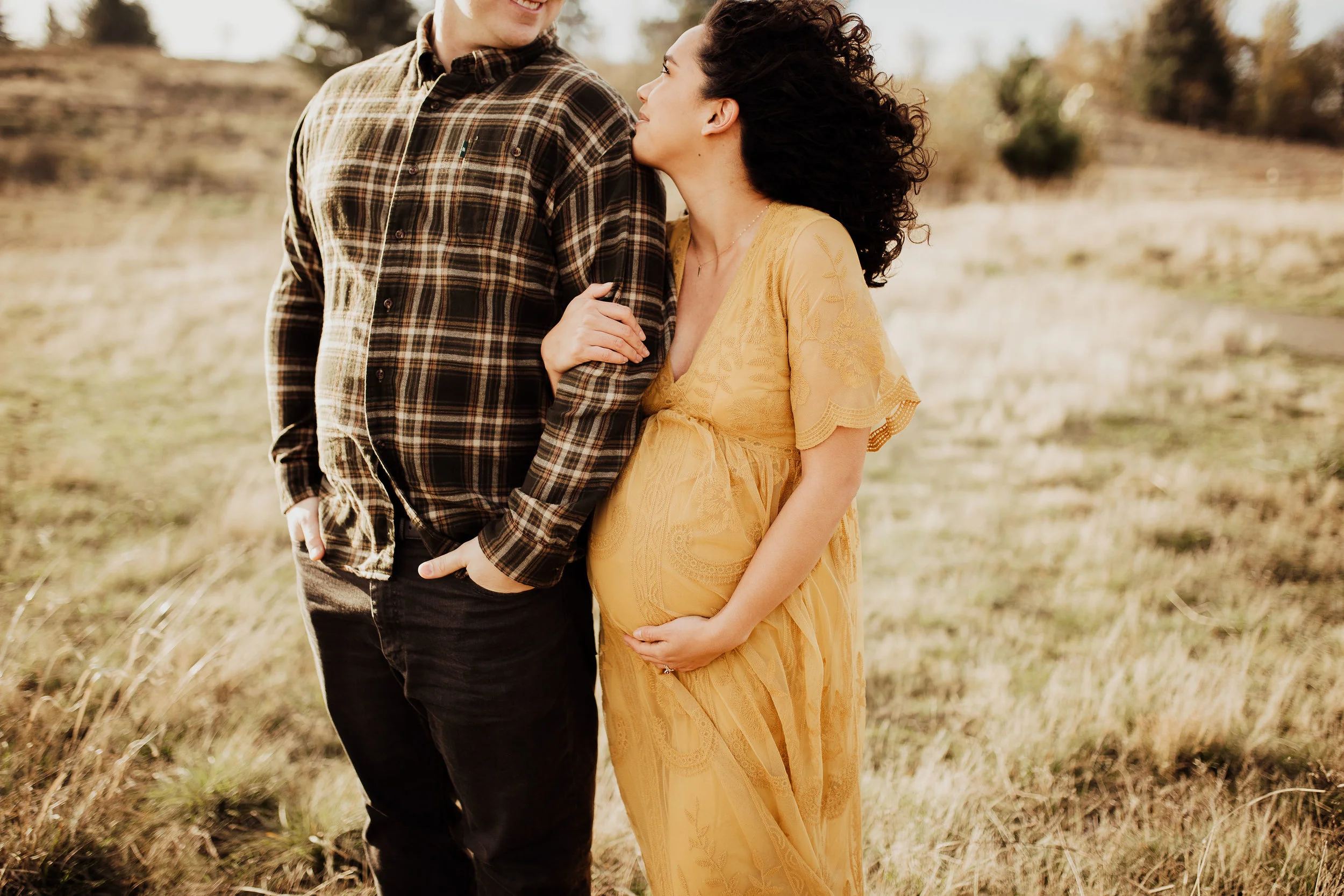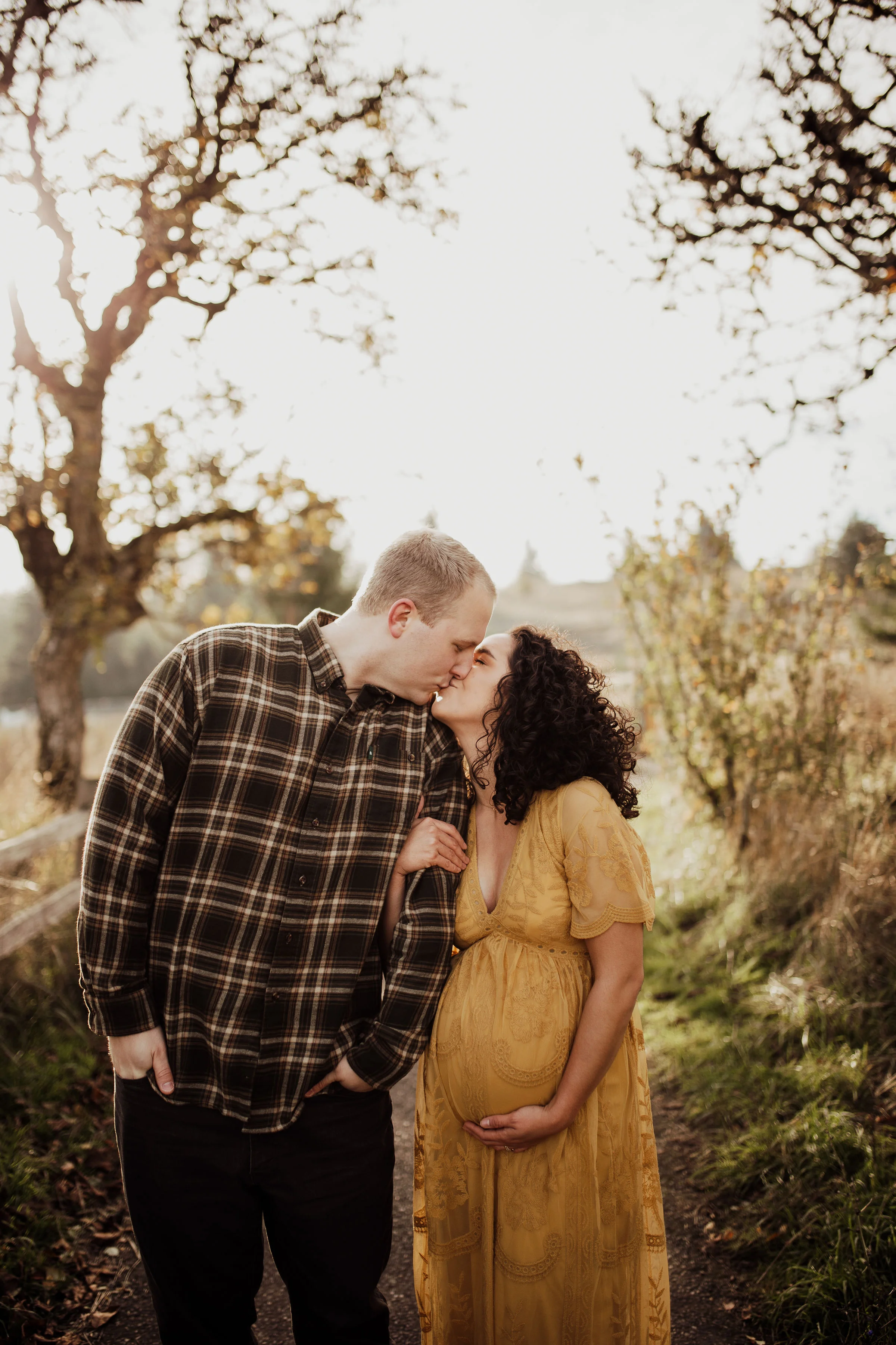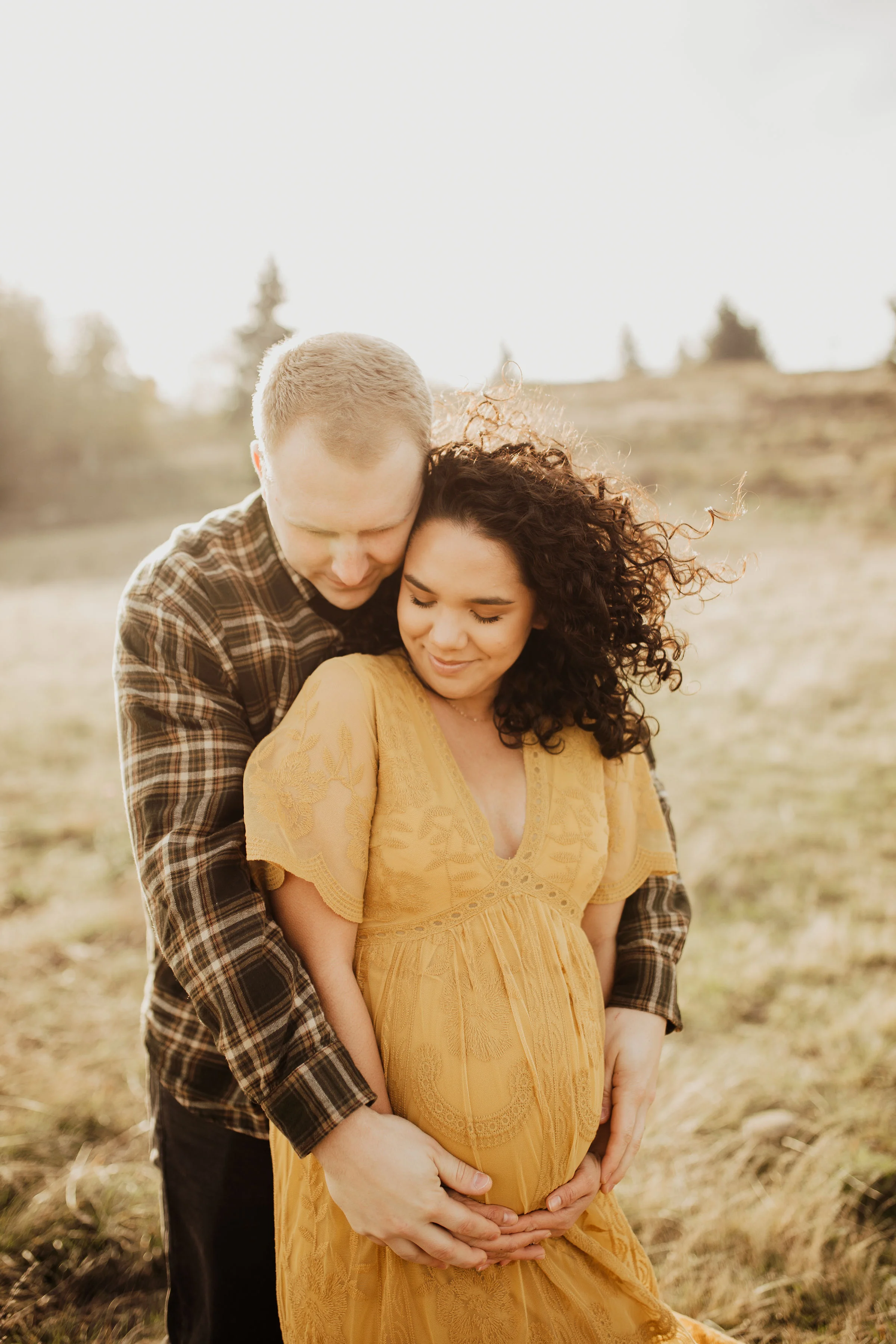 We rescheduled their maternity session & prayed for sun. The day for their maternity session arrived, once again. We had planned to have it at Vista House in the Gorge. Once we all were there, we realized the wind was just too much to handle. Winds so strong that we had to yell, just to have a conversation. We all loaded up and headed to my back up location. Thankfully, the sun we had prayed for showed up… along with the Oregon cold brisk air. I think we did their entire maternity session in under 45 mins, moving as quickly as we could to try to stay warm. Looking back at these, You’d never know it was 30 degrees with wind.